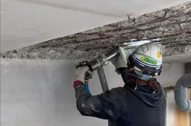 斫り(はつり)工事とは、コンクリートの壁・床・天井などを、壊したり、削ったり、穴をあけたり、整えたりする仕事です。